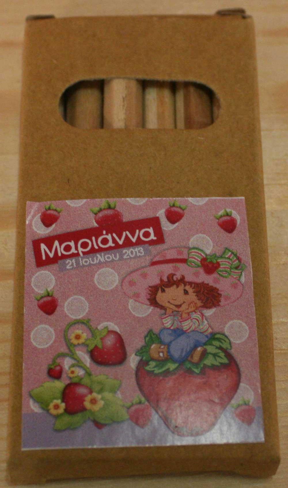 Ξυλομπογιές Φράουλίτσα για δωράκια σε βάπτιση ή παιδικό πάρτυ.  Η τιμή αφορά τις ξυλομπογιές.