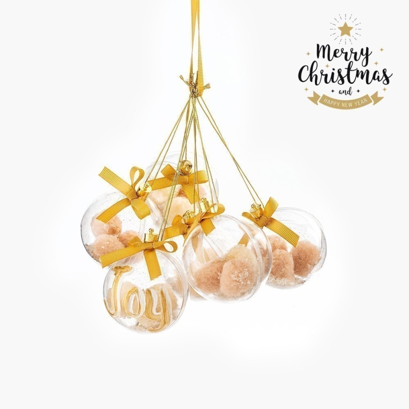 Χριστουγεννιάτικο στολίδι- κρεμαστή ακρυλική μπάλα. Στο εσωτερικό είναι διακοσμημένη με σομόν pom pom & πασπαλισμένη με χιόνι. Η ζωγραφιστή ευχή "JOY" ολοκληρώνει το ιδανικό στολίδι για το Χριστουγεννιάτικο δέντρο σας. Συσκευασία των 6 τεμαχίων.