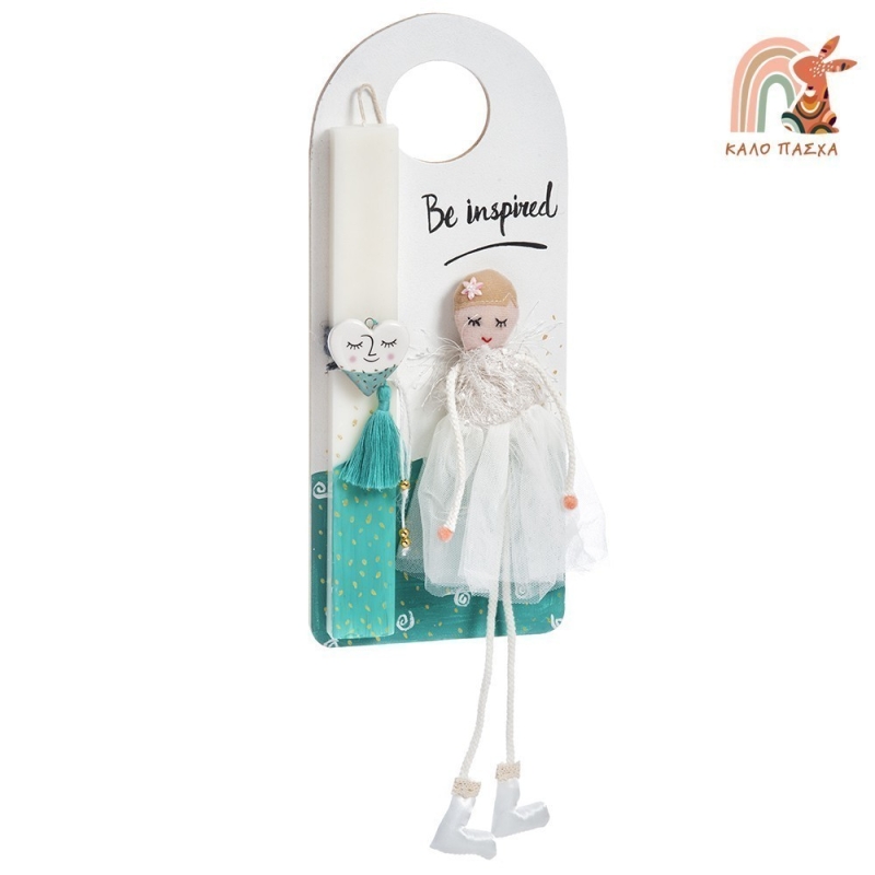 Πασχαλινή λαμπάδα με θέμα κοριτσάκι και μότο Be inspired. Το πασχαλινό δωράκι περιλαμβάνει: