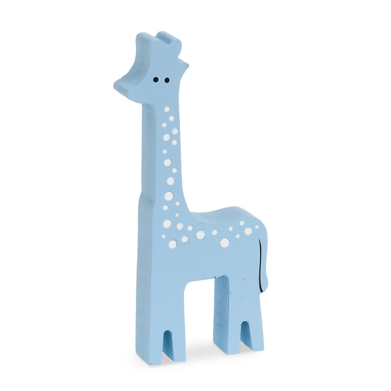 Ξύλινη διακοσμητική 3D καμηλοπάρδαλη σε χρώμα σιέλ με λεπτομέρειες πουά λευκό.