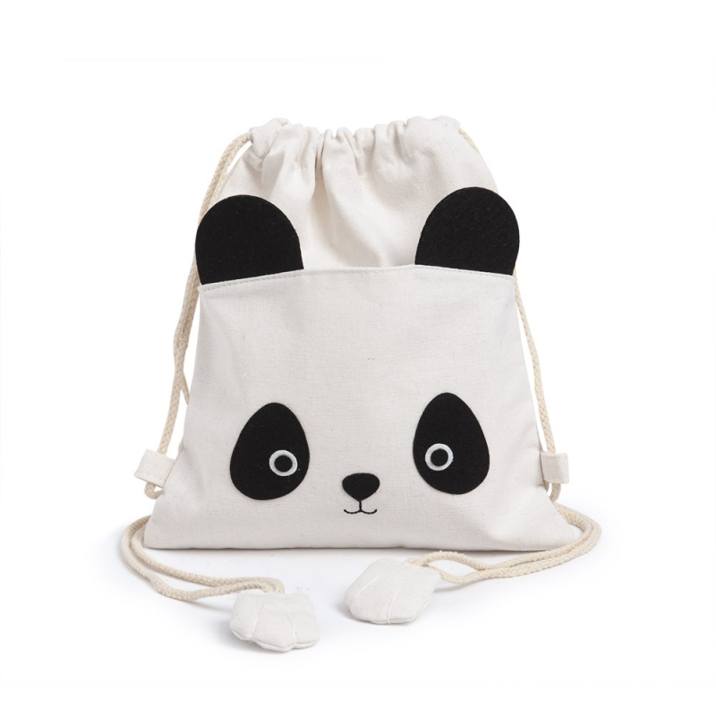 Υφασμάτινο Backpack με σχέδιο Panda σε εκρού χρώμα με τσεπάκι μπροστά. Ιδανικό για παιδικό δώρο.