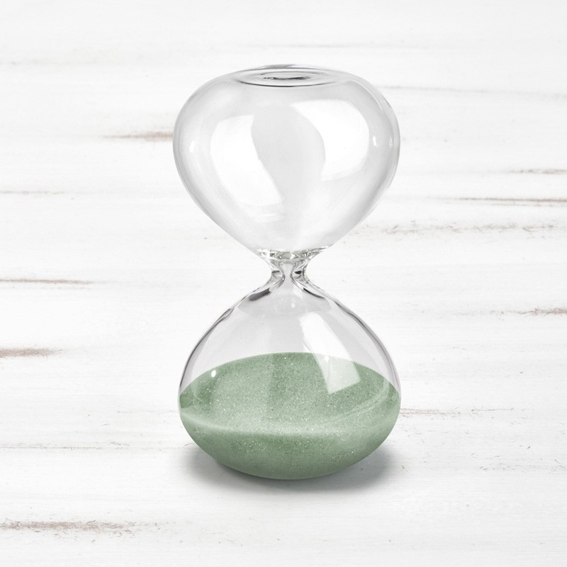 Γυάλινη διακοσμητική κλεψύδρα. Το χρώμα της άμμου είναι βεραμάν. Ο αντίστροφος χρόνος 5 λεπτά & 30 δευτερόλεπτα.