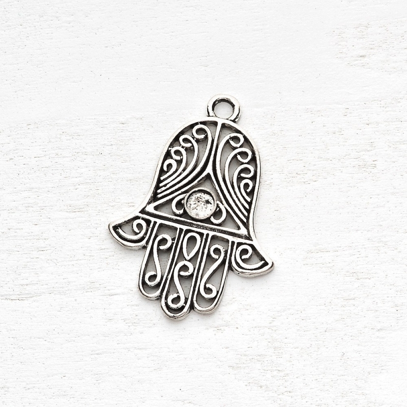 Μεταλλική κρεμαστή διακοσμητική παλάμη 3.5 cm σε χρώμα ασημί. Κατάλληλο για διακοσμήσεις και χειροποίητες κατασκευές. Η συσκευασία περιέχει 10 τεμάχια.