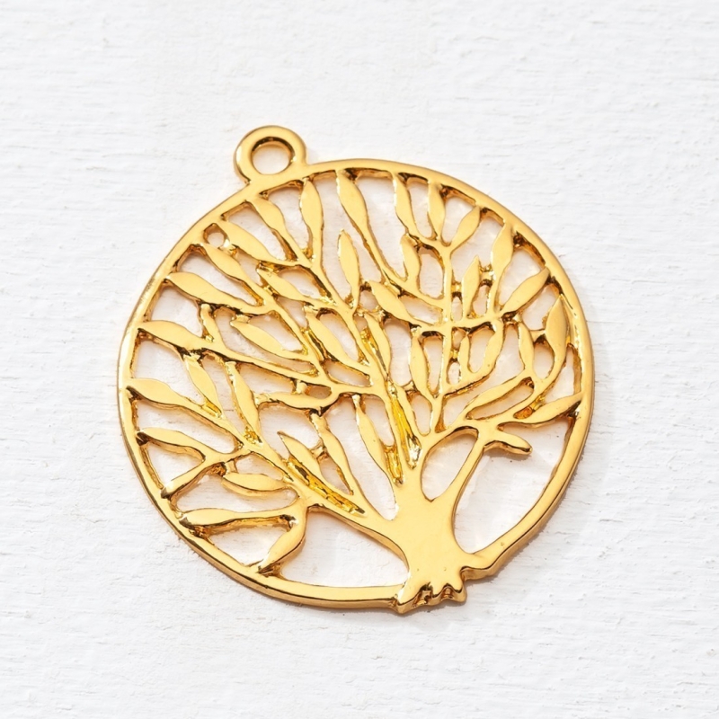 Μεταλλικό κρεμαστό διακοσμητικό στρογγυλό δέντρο σε χρώμα χρυσό. Κατάλληλο για διακοσμήσεις και χειροποίητες κατασκευές. Η συσκευασία περιέχει 10 τεμάχια.