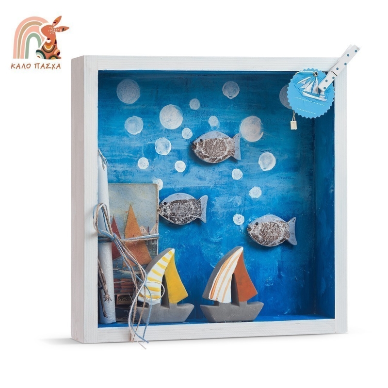 Νέες Παραλαβές | Ξύλινη πασχαλινή κορνίζα σετ δώρου καράβια
