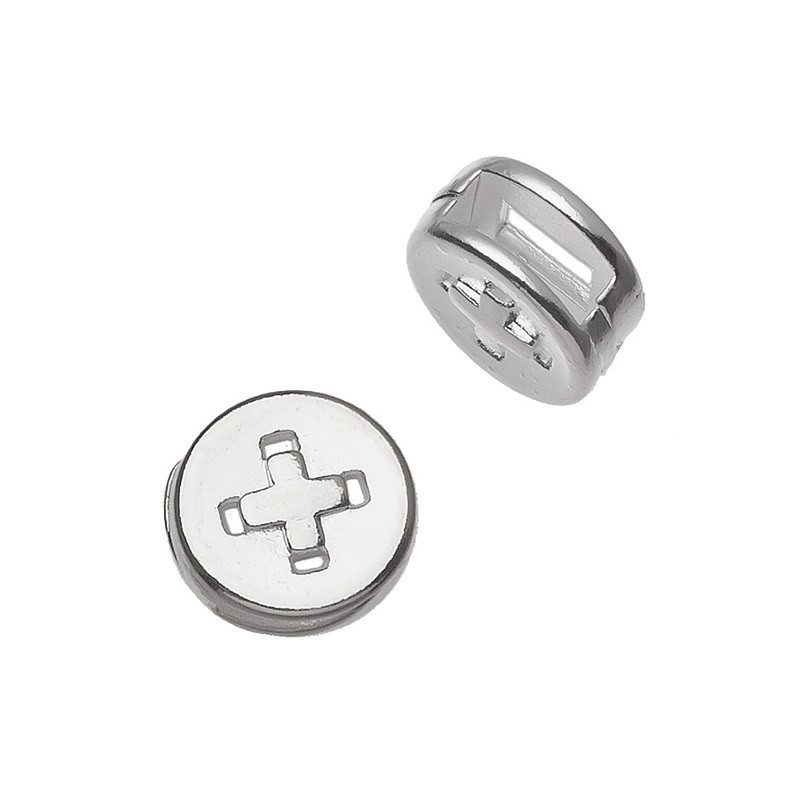 Μεταλλικό χυτό σταυρουδάκι για περαστή κορδέλα για κατασκευές μαρτυρικών, σε ασημί χρώμα.
