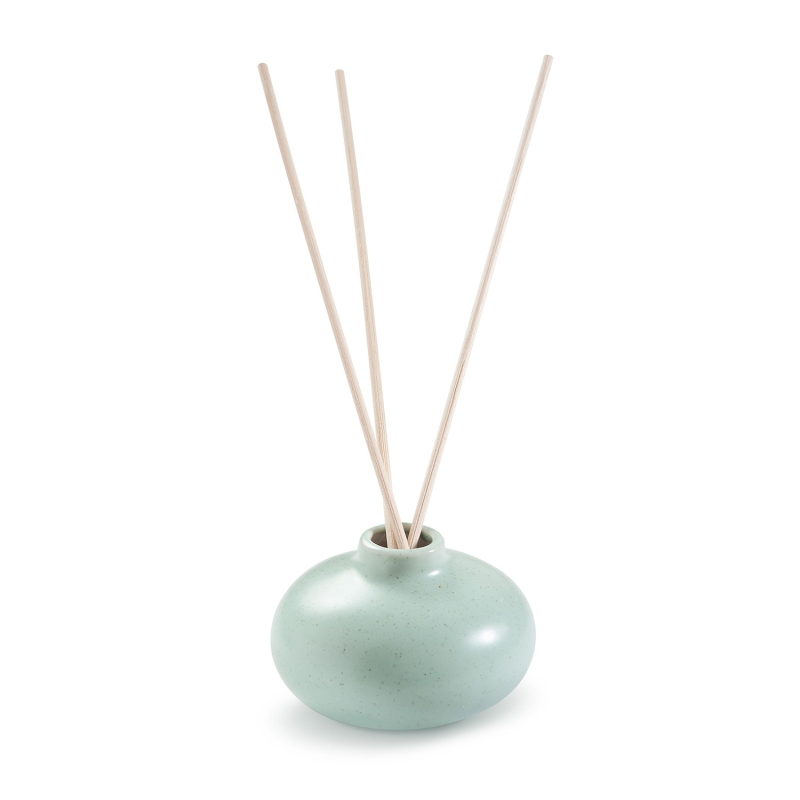 Πορσελάνινο βαζάκι που χρησιμοποιείται ως αρωματικό χώρου. Το σχέδιο έχει στρογγυλό σχήμα και είναι σε βεραμάν χρώμα. Συνοδεύεται από 3 ξύλινα stick. Η περιεκτικότητα του είναι 124ml. Διάστ.: 7,5x5,5cm