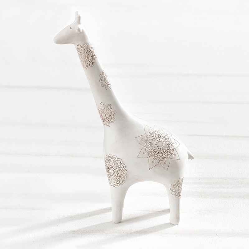 Πολυεστερική διακοσμητική καμηλοπάρδαλη σε λευκό χρώμα με σκαλιστά λουλούδια. Ιδανικό και ως δώρο