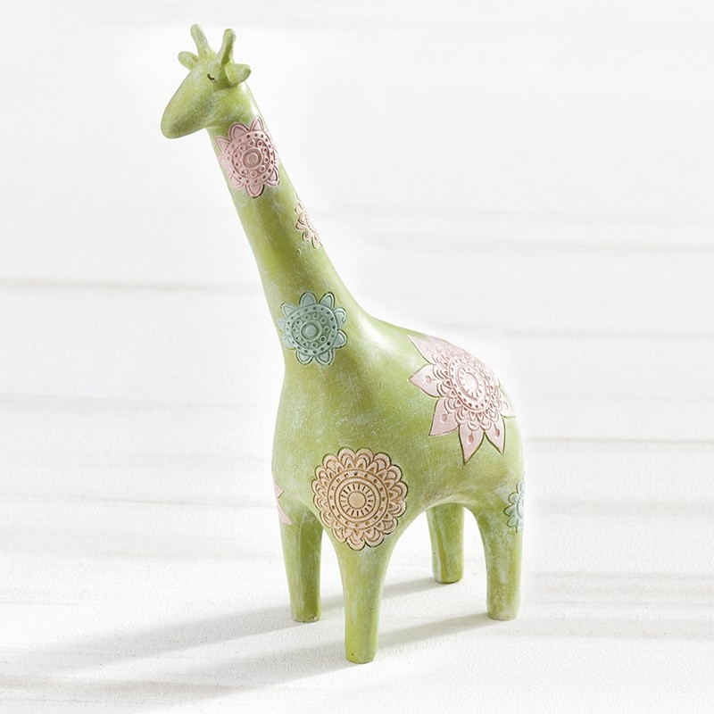 Πολυεστερική διακοσμητική καμηλοπάρδαλη σε βεραμάν χρώμα με πολύχρωμα σκαλιστά λουλούδια. Ιδανικό και ως δώρο
