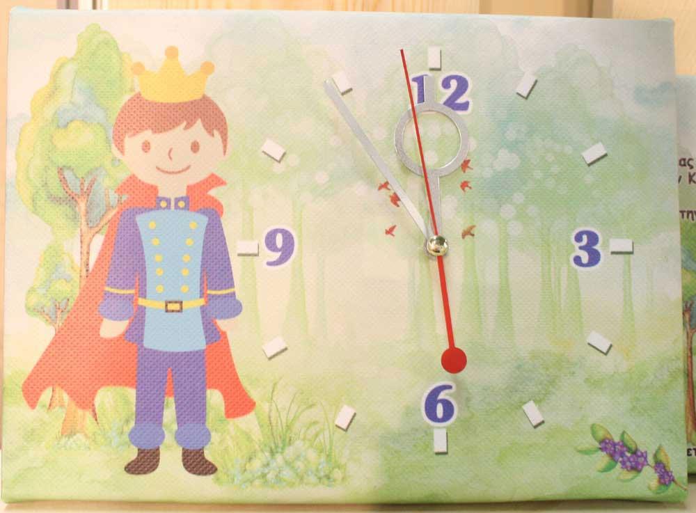 Καμβαδάκι Ρολόι πρίγκιπας σε διάσταση 12 x 12 cm για δωράκι. Μπορούμε να προσαρμόσουμε όποιο θέμα θέλετε.