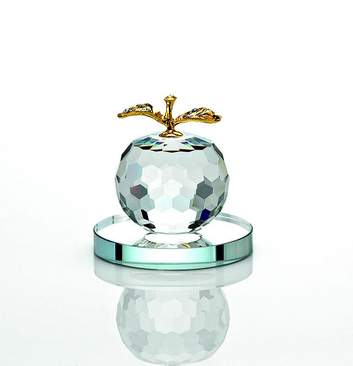 ΚΡΥΣΤΑΛΛΙΝΗ ΜΠΟΜΠΟΝΙΕΡΑ ΜΗΛΟ ΜΕ ΧΡΥΣΑ ΦΥΛΛΑ ΚΑΙ ΣΤΡΑΣΑΚΙΑ Φ5,5Χ5,5Υ