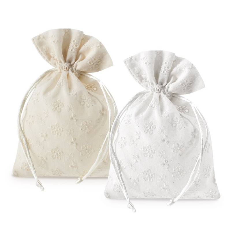 Υφασμάτινο πουγκί.Κλασσικό σχέδιο με ….βελονάκι…! Embroidery σε λευκό χρώμα.