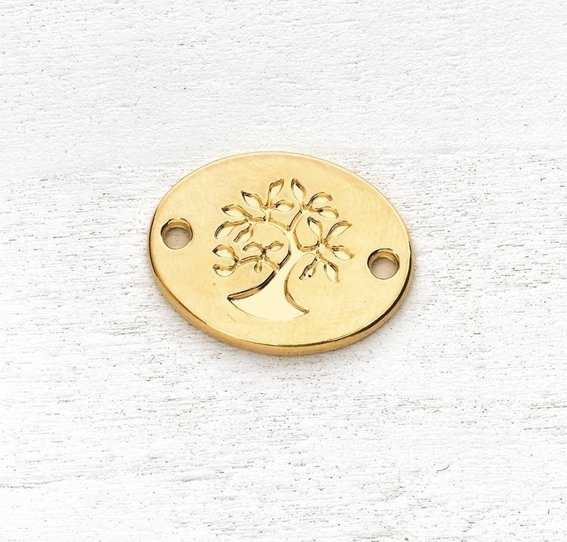 Μεταλλικό κρεμαστό διακοσμητικό οβάλ δέντρο σε χρώμα χρυσό με δυο τρύπες.