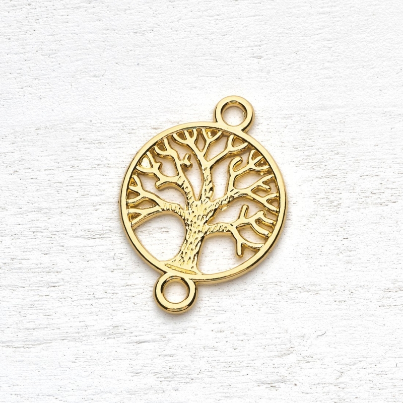 Μεταλλικό κρεμαστό διακοσμητικό στρογγυλό δέντρο σε χρώμα χρυσό με δυο τρύπες. Κατάλληλο για διακοσμήσεις και χειροποίητες κατασκευές. Η συσκευασία περιέχει 10 τεμάχια.