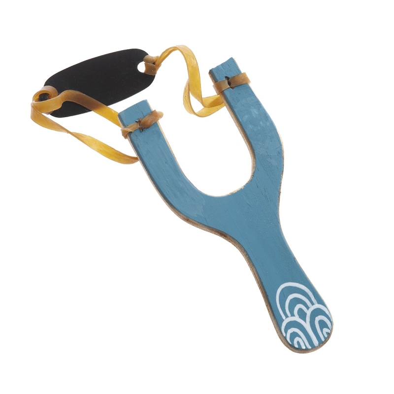 Ξύλινη ζωγραφιστή σφεντόνα σε πετρόλ με λευκά κύματα.