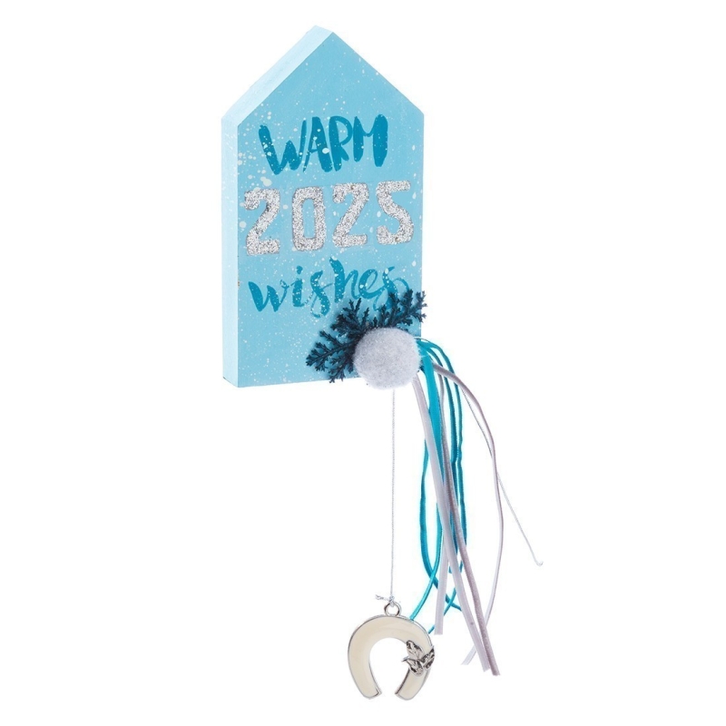 Χριστουγεννιάτικο ξύλινο διακοσμητικό σπιτάκι σε σιελ χρώμα με ασημί glitter.