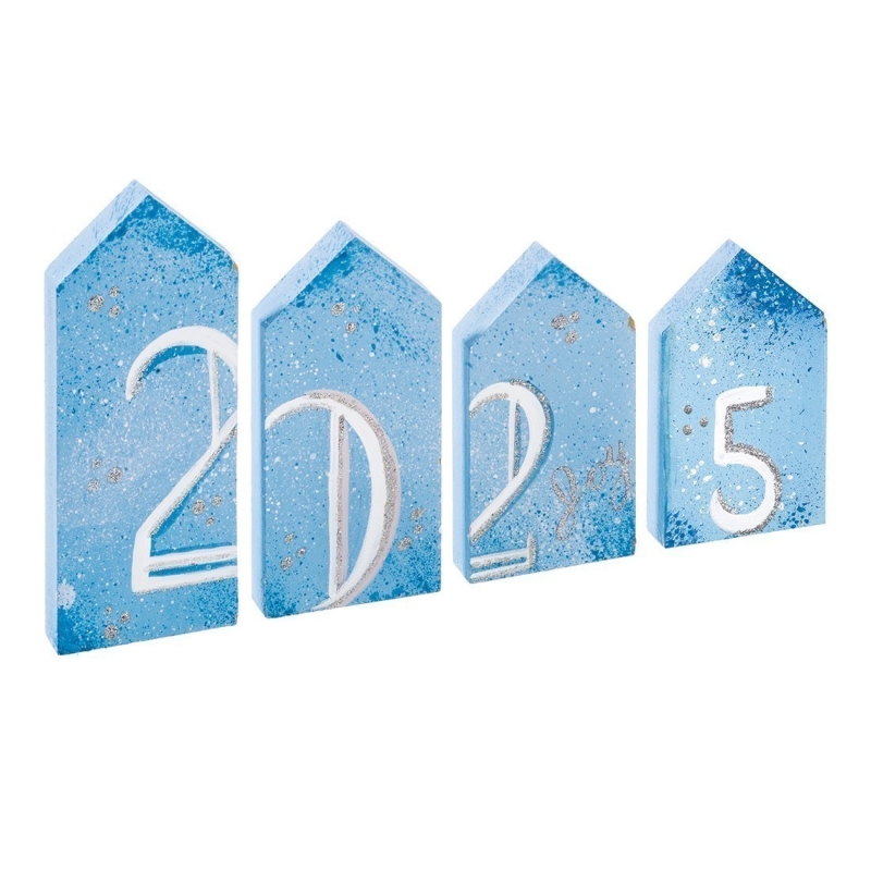 Χριστουγεννιάτικη ξύλινη ζωγραφιστή σύνθεση σε σιελ χρώμα με λευκά σβησίματα. Περιλαμβάνει 4 σπιτάκια σε διαφορετικές διαστάσεις.