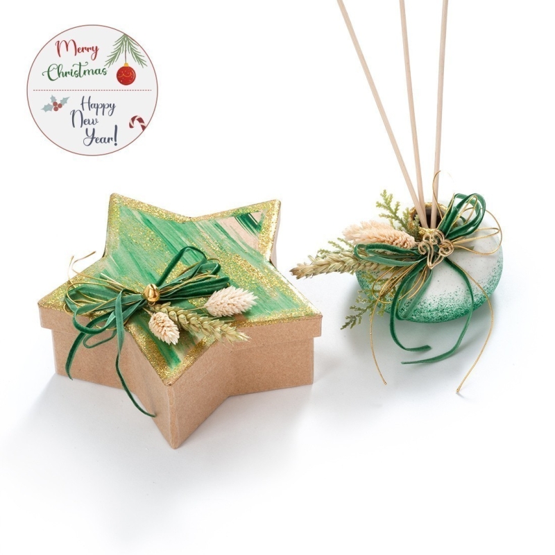 Xριστουγεννιάτικο σετ δώρου που περιλαμβάνει: α)πορσελάνινο βαζάκι σε λευκό χρώμα με χρυσά glitter σβησίματα και πράσιες πινελιές, β) χάρτινο κουτί σε σχήμα αστεριού.