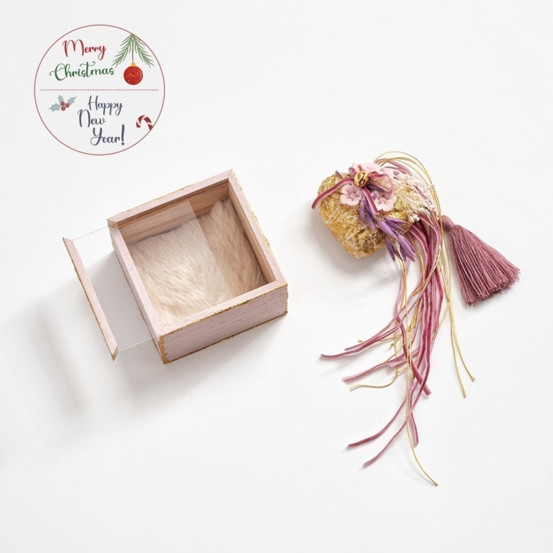 Χριστουγεννιάτικο ξύλινο τετράγωνο κουτάκι με καπάκι plexi glass σε ροζ χρώμα με χρυσό glitter. Το δωράκι περιλαμβάνει πορσελάνινη καρδιά στολισμένη με μεταλλικό μοτίφ.