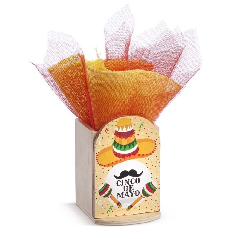 Ξύλινη μολυβοθήκη σε natural χρώμα. Διακοσμημένο με κοπτικό μεξικάνικη Fiesta.