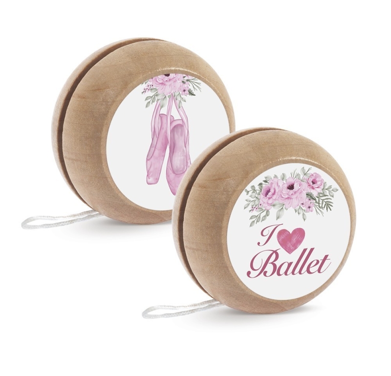 Ξύλινο natural γιο-γιο με σκοινάκι. Είναι διακοσμημένο με αυτοκόλλητο print πουέντ μπαλαρίνας σε ροζ απόχρωση με διαφορετικό σχέδιο μπρος-πίσω. Τα yo-yo έχουν αυτοκόλλητο και στις 2 όψεις.