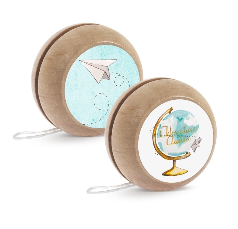 Ξύλινο natural γιο-γιο με σκοινάκι. Είναι διακοσμημένο με αυτοκόλλητο print με την υδρόγειο με διαφορετικό σχέδιο μπρος-πίσω. Τα yo-yo έχουν αυτοκόλλητο και στις 2 όψεις.