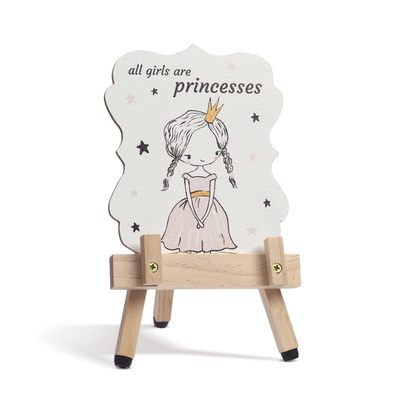 Ξύλινο καδράκι print σε καβαλέτο. Η παράσταση είναι πριγκίπισσα.