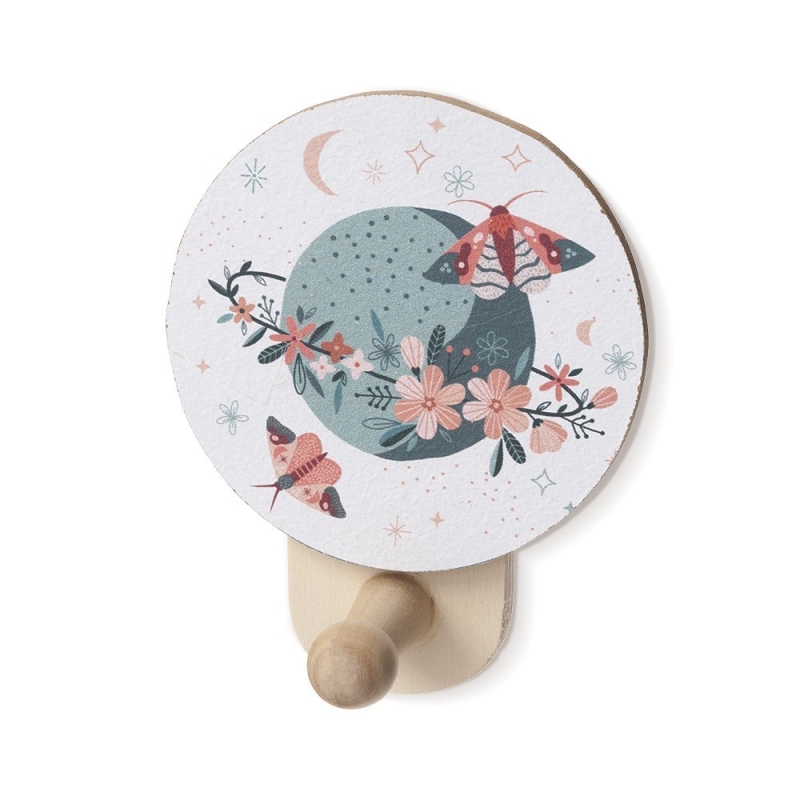 Ξύλινη natural κρεμάστρα τοίχου, διακοσμημένη με στρογγυλό κοπτικό πεταλούδες .