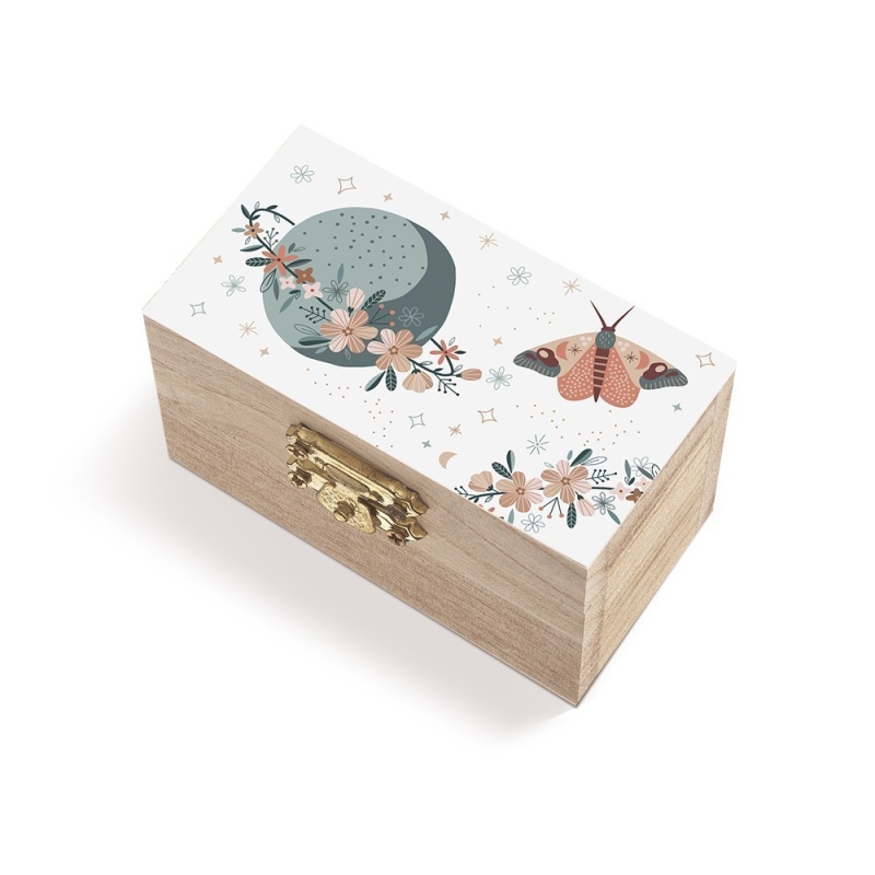 Ξύλινο natural σεντούκι με μεταλλικό κούμπωμα. Είναι διακοσμημένο με αυτοκόλλητο print πεταλούδες.