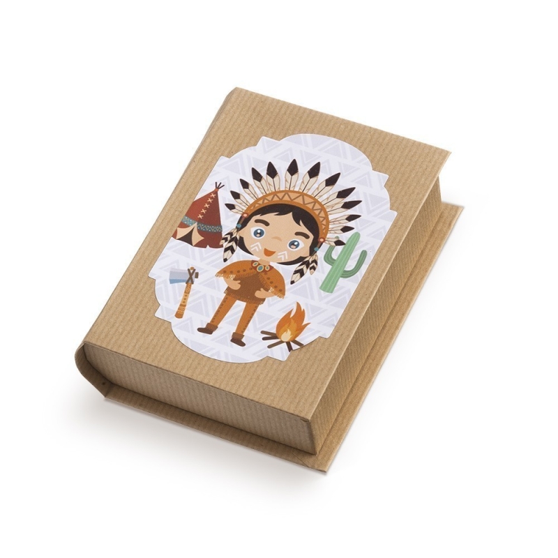 Χάρτινο kraft βιβλιαράκι. Είναι διακοσμημένο με αυτοκόλλητο ινδιάνο.