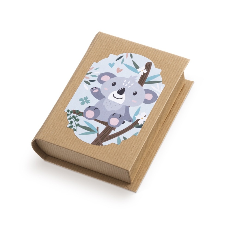 Χάρτινο kraft βιβλιαράκι. Είναι διακοσμημένο με αυτοκόλλητο κοάλα.