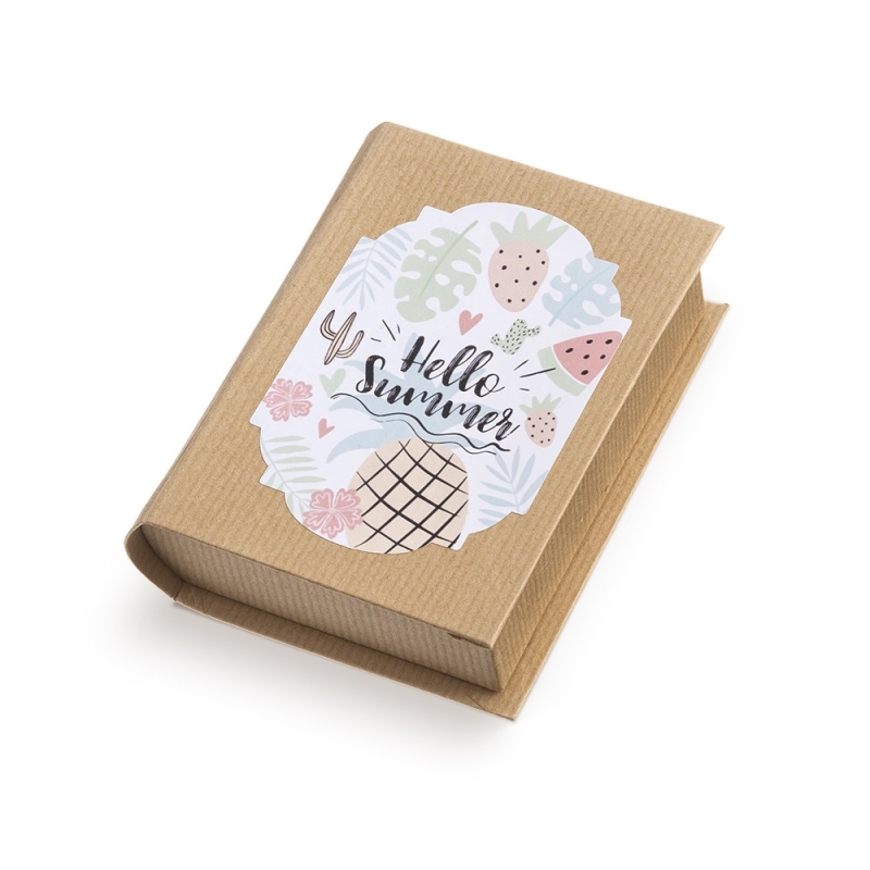 Χάρτινο kraft βιβλιαράκι. Είναι διακοσμημένο με αυτοκόλλητο hello summer με ανανά.