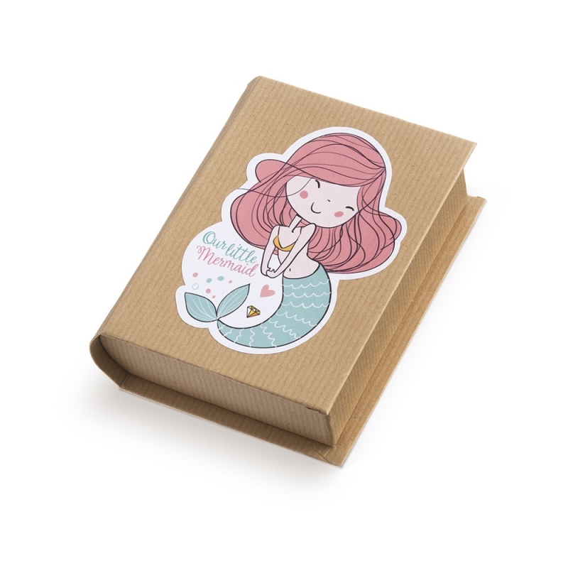 Χάρτινο kraft βιβλιαράκι. Είναι διακοσμημένο με αυτοκόλλητο γοργόνα.