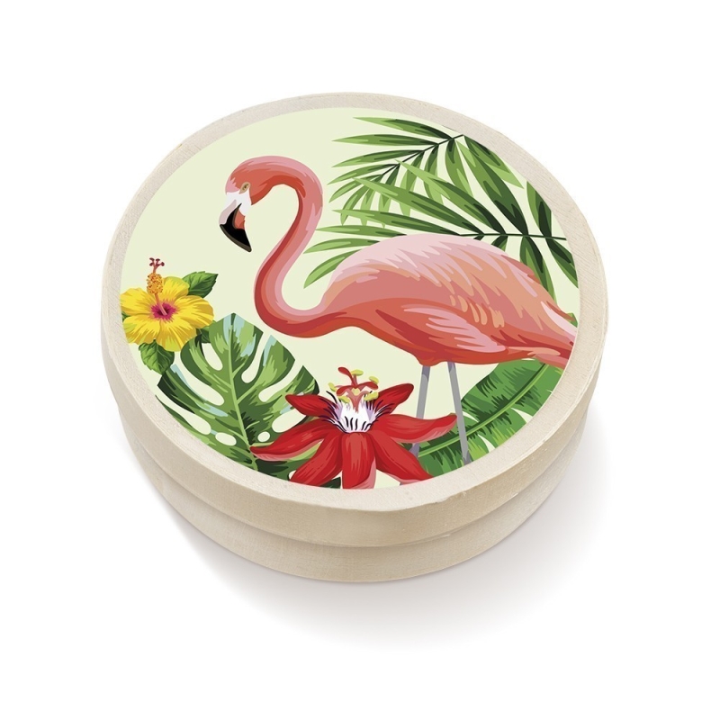 Ξύλινο Στρογγυλό Κουτάκι Flamingo
