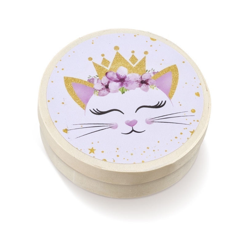 Ξύλινο Στρογγυλό Κουτάκι Γατούλα