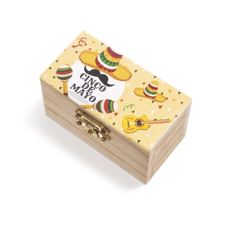 Ξύλινο natural σεντούκι με μεταλλικό κούμπωμα. Είναι διακοσμημένο με αυτοκόλλητο print μεξικάνικη fiesta.
