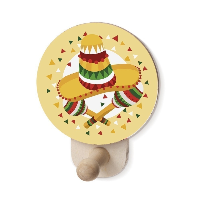 Ξύλινη natural κρεμάστρα τοίχου, διακοσμημένη με στρογγυλό κοπτικό μεξικάνικη fiesta.