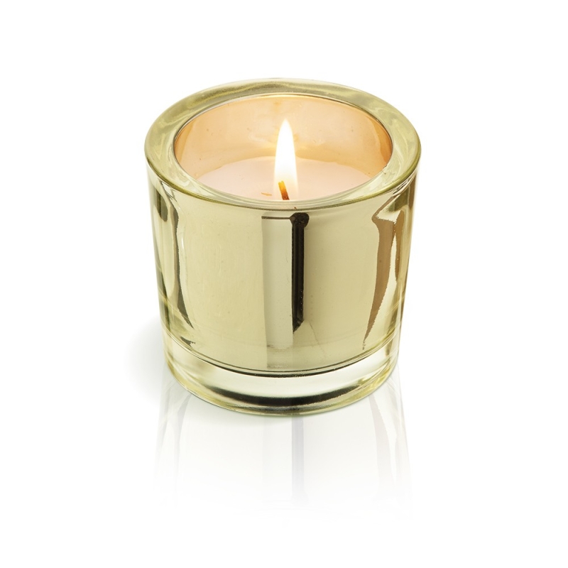 Γυάλινο διακοσμητικό για ρεσώ γεμισμένο με αρωματικό κερί με κερί σε χρυσό χρώμα. Η περιεκτικότητα του είναι 70ml.