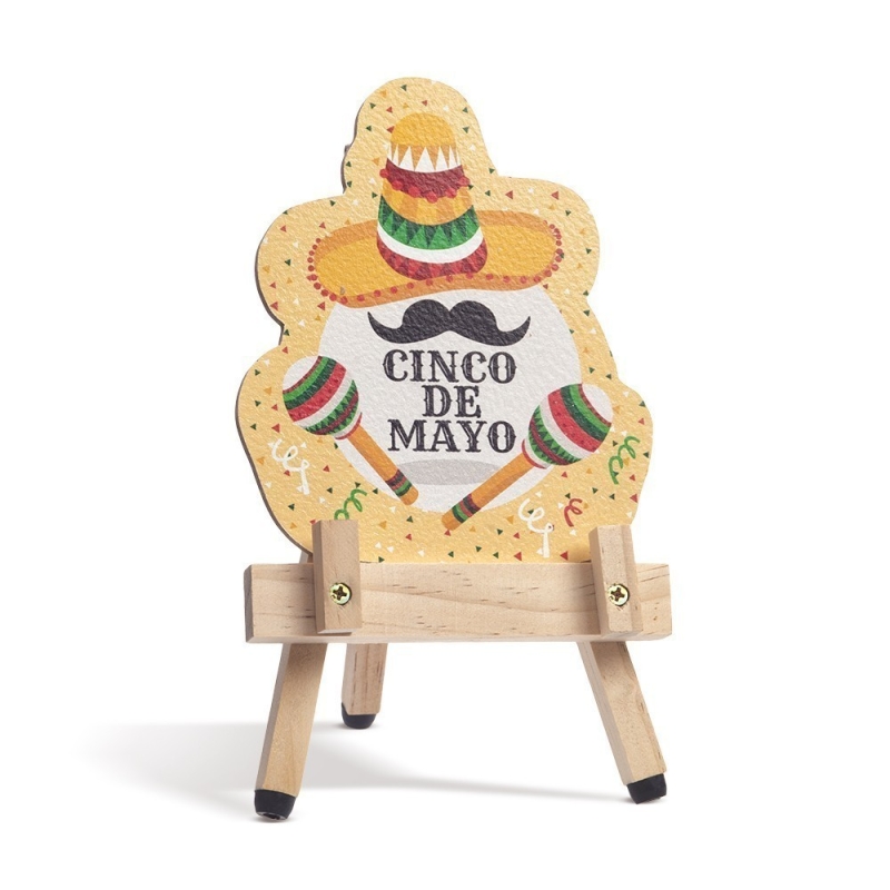 Ξύλινο καδράκι print σε καβαλέτο. Η παράσταση είναι με θέμα μεξικάνικη fiesta σε κίτρινη απόχρωση.