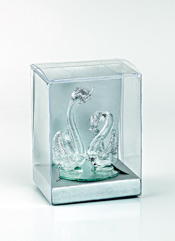 ΓΥΑΛΙΝΗ ΜΠΟΜΠΟΝΙΕΡΑ ΚΥΚΝΟΙ ΑΣΗΜΙ ΣΕ PVC KOYTAKI 6x5x8cm