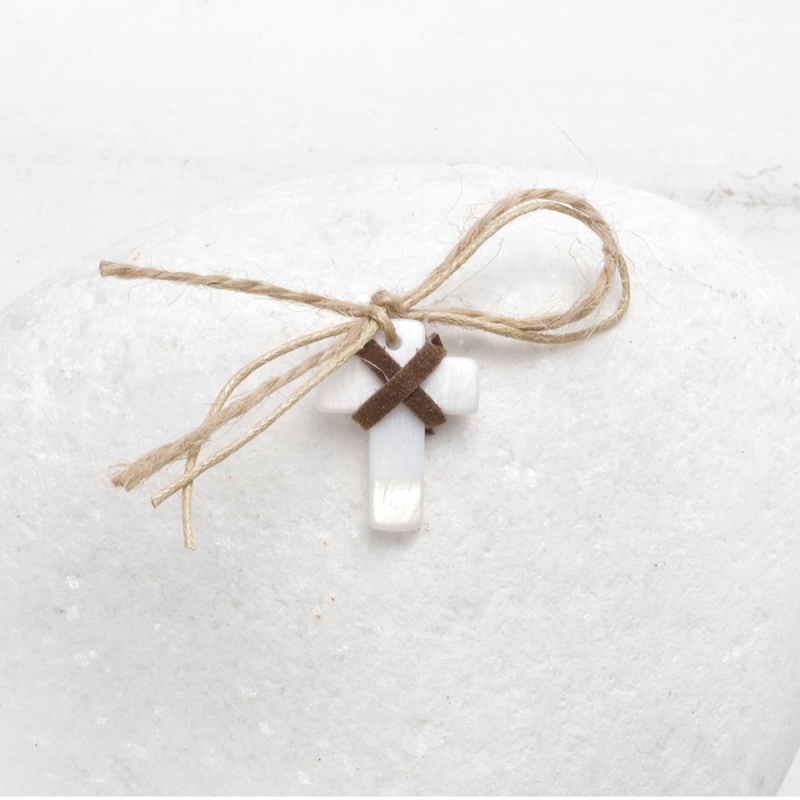Μαρτυρικό με φίλντισι σταυρό λευκό και κορδόνι καφέ.
