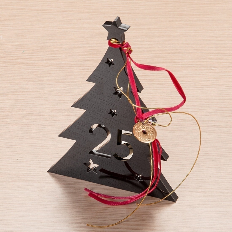 Plexiglass διακοσμητικό Χριστουγεννιάτικο δέντρο σε μαύρο χρώμα. Στο εσωτερικό είναι χαραγμένα αστεράκια και το 2024.Το επιτραπέζιο δέντρο είναι στολισμένο με μεταλλική δεκάρα, κορδόνια και βελούδινη κορδέλα σε κόκκινη απόχρωση.