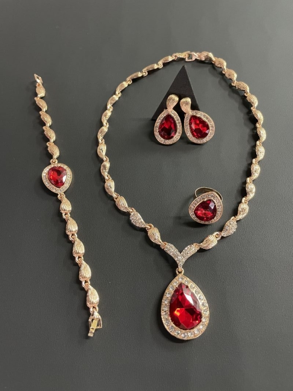 ΣΕΤ ΚΟΣΜΗΜΑΤΩΝ ΓΑΜΟΥ ΜΕΝΤΑΓΙΟΝ,ΔΑΧΤΥΛΙΔΙ,ΒΡΑΧΙΟΛΙ & ΣΚΟΥΛΑΡΙΚΙΑ ΜΕ ΚΟΚΚΙΝΗ ΠΕΤΡΑ