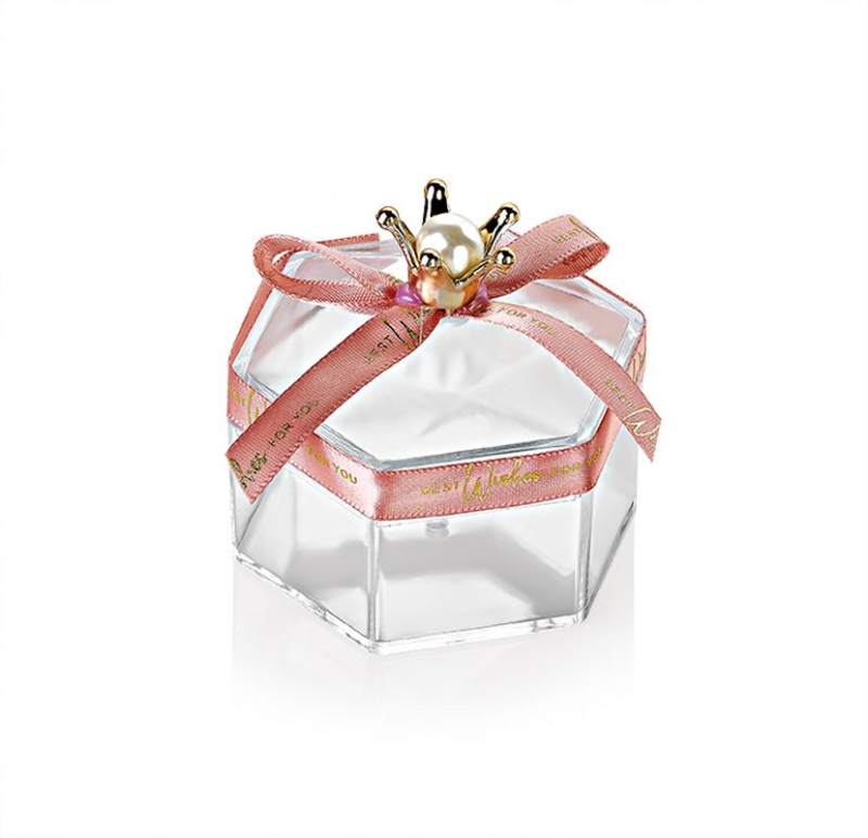 ΜΠΟΜΠΟΝΙΕΡΑ ΜΠΙΖΟΥΤΙΕΡΑ ΠΟΛΥΓΩΝΗ PVC ΜΕ ΡΟΖ ΚΟΡΔΕΛΑ ΚΑΙ ΧΡΥΣΗ ΚΟΡΩΝΑ Φ6X6CM