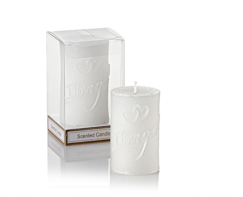 ΜΠΟΜΠΟΝΙΕΡΑ ΑΡΩΜΑΤΙΚΟ ΛΕΥΚΟ ΚΕΡΙ I LOVE YOU Φ4.5X7.5CM ΣΕ PVC ΚΟΥΤΑΚΙ 6X6X9.5CM