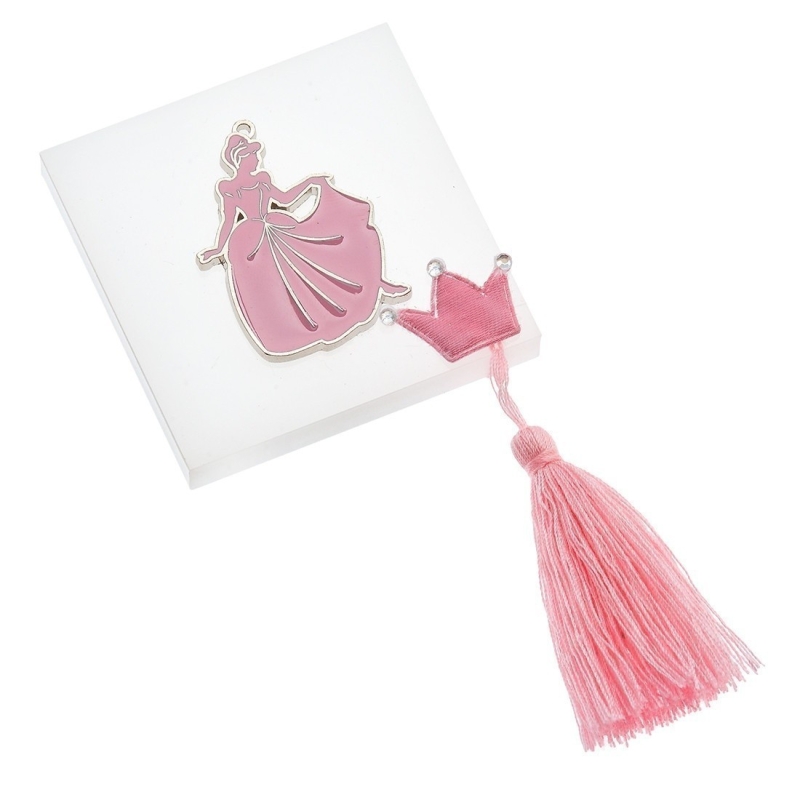 Διακοσμητική βάση plexiglass.H λευκή βάση είναι διακοσμημένη με μεταλλικό μοτίφ Cinderella και στολισμένη με φουντίτσα σε ροζ απόχρωση.