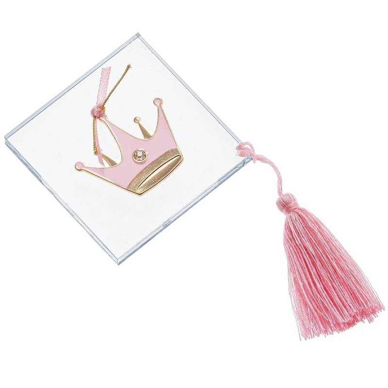 Διακοσμητική βάση plexiglass.H διάφανη βάση είναι διακοσμημένη με μεταλλικό μοτίφ κορώνα σε ροζ απόχρωση και στολισμένο με φουντίτσα σε αντίστοιχη απόχρωση.