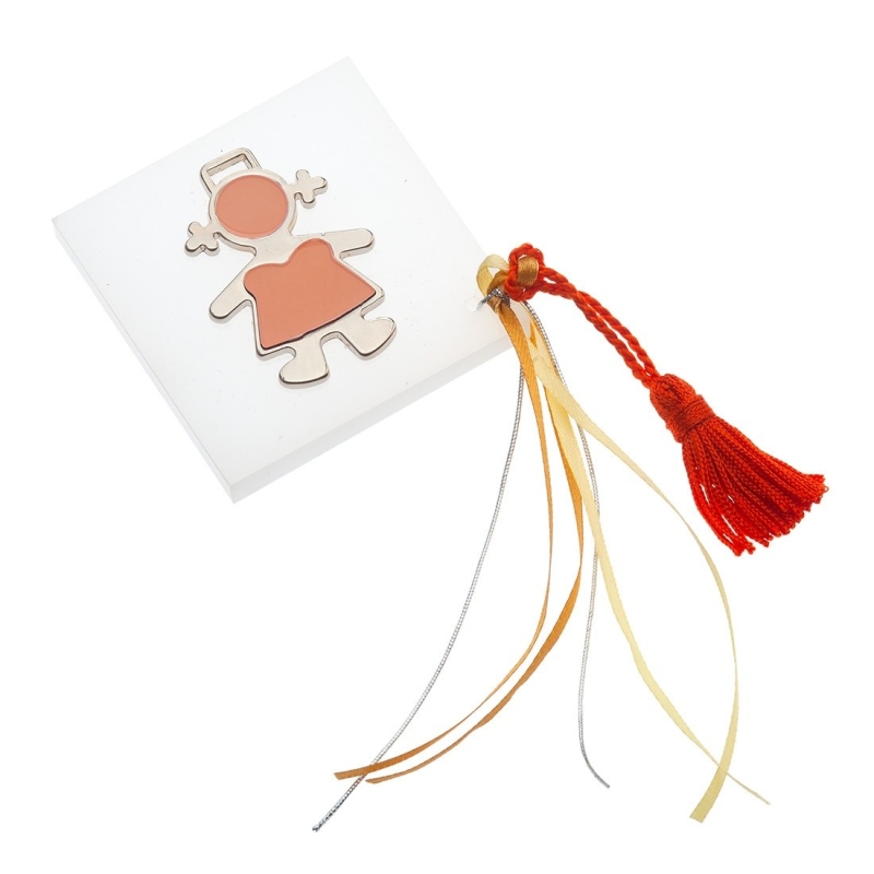 Διακοσμητική βάση plexiglass.H λευκή βάση είναι διακοσμημένη με μεταλλικό κοριτσάκι, στολισμένη με κορδέλες και φουντίτσα.