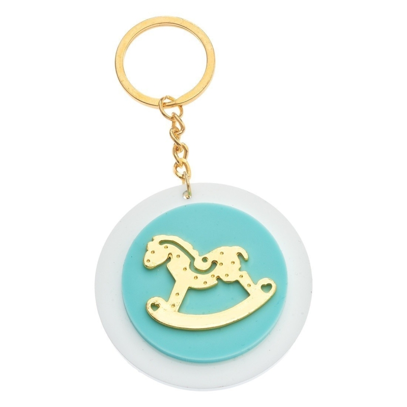Plexiglass μπρελόκ με μεταλλικό στοιχείο. Η βάση του μπρελόκ αποτελείται από δύο plexiglass σε χρώμα λευκό και βεραμάν με μεταλλικό χρυσό στοιχείο αλογάκι .
