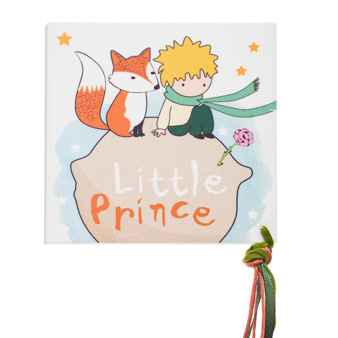 Σουβέρ σε τετράγωνο σχήμα με print plexiglass παράσταση σε λευκό χρώμα. Η παράσταση απεικονίζει την κλασσική φιγούρα του Μικρού Πρίγκιππα από το παραμύθι .